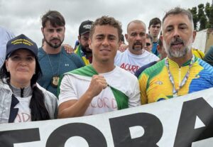 Leticia Aguiar e o vereador Senna caminham ao lado de Nikolas Ferreira e reafirmam o