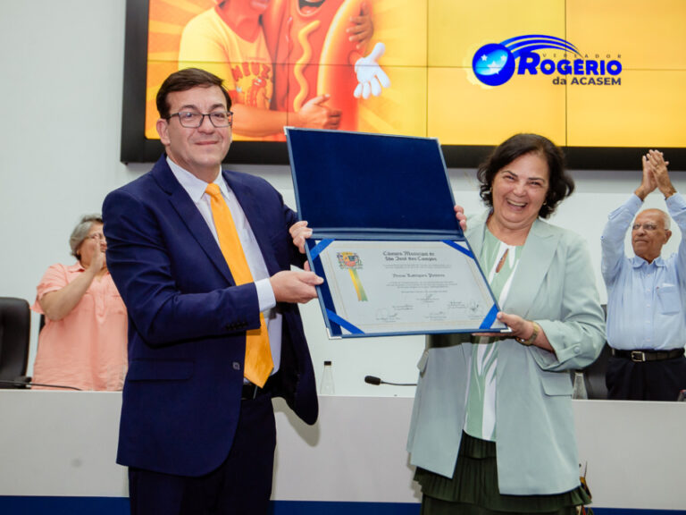 A trajetória da homenageada foi lembrada como exemplo de solidariedade e fé, além da venda de cachorro-quente, que a tornou popular na cidade Na noite